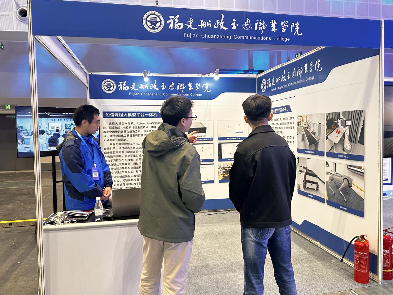 11 月 27 日上午,由工業(yè)和信息化部教育與考試中心主辦的首屆新型工業(yè)化產(chǎn)教融合展在重慶科學(xué)會堂隆重開幕。展會以“智?聚英才 融?創(chuàng)未來”為主題,匯聚各級政府部門、行業(yè)組織、重點(diǎn)企業(yè)、院校代表等各方力量,共商產(chǎn)教融合發(fā)展大計(jì)。福建船政交通職業(yè)學(xué)院攜船信課程大模型平臺一體機(jī)、工業(yè)大模型流水線生產(chǎn)實(shí)訓(xùn)平臺兩大核心成果參展。