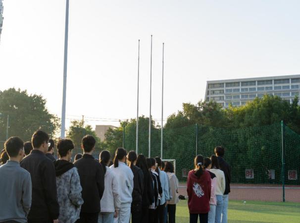 本次主題升旗活動(dòng)通過莊重的儀式傳遞家國信仰,將愛國主義教育從理論層面轉(zhuǎn)化為實(shí)踐行動(dòng)。在活動(dòng)過程中,同學(xué)們以昂揚(yáng)向上的精神風(fēng)貌齊聚田徑場,滿懷崇敬之心等待儀式開幕。國旗護(hù)衛(wèi)隊(duì)邁著整齊矯健的步伐,踏著鏗鏘有力的節(jié)奏,護(hù)送五星紅旗莊嚴(yán)入場。五星紅旗在雄壯的國歌旋律中冉冉升起,全體肅立凝神,目光緊緊追隨國旗的方向,行注目禮并齊聲高唱國歌,現(xiàn)場氛圍莊重肅穆。