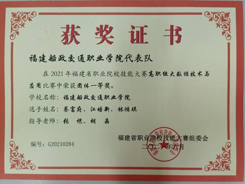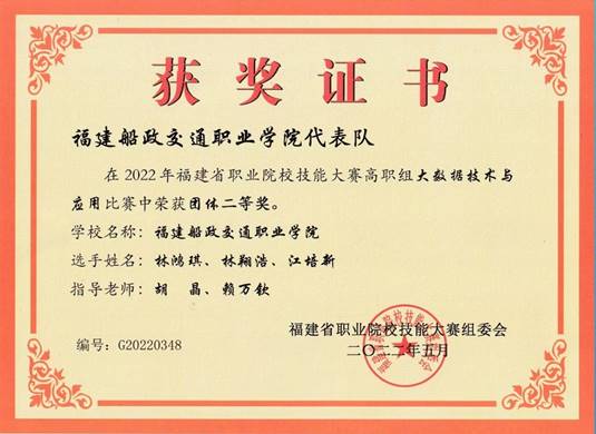 人才培養(yǎng)依托行業(yè)領(lǐng)軍企業(yè),結(jié)合智慧交通大數(shù)據(jù)、智慧海洋大數(shù)據(jù)等產(chǎn)業(yè)發(fā)展方向,注重“產(chǎn)教融合、課證融通、以賽促學(xué)”的教育理念,學(xué)生多次在世界職業(yè)院校技能大賽、全省職業(yè)院校技能競賽、金磚國家技能發(fā)展與技術(shù)創(chuàng)新大賽、華為ICT大賽等專業(yè)相關(guān)賽項中榮獲一等獎、二等獎的好成績。