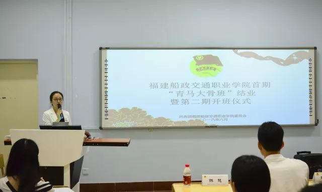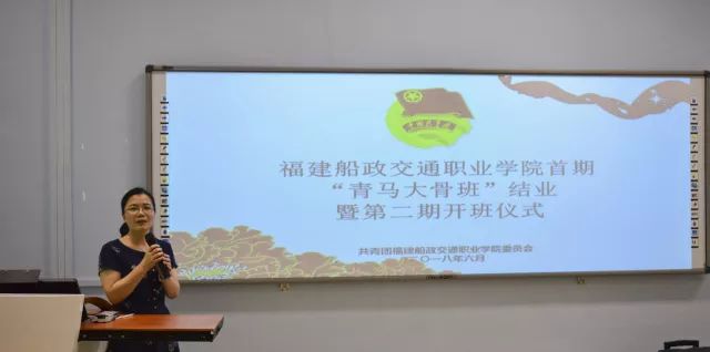 陳艷紅副院長在開班儀式致辭,她說:”青馬大骨班“的學(xué)員,不僅是團(tuán)學(xué)干部,更是學(xué)院優(yōu)秀學(xué)子的典型代表。"青馬工程"的首要任務(wù),就是培養(yǎng)具有堅(jiān)定馬克思主義理想信念的青年學(xué)生,充分發(fā)揮團(tuán)員青年在學(xué)院建設(shè)發(fā)展中的生力軍和突擊隊(duì)作用。她希望第二期青馬大骨班的同學(xué)向首期優(yōu)秀學(xué)員學(xué)習(xí),在繼承中創(chuàng)新,并對第二期青馬大骨班學(xué)員提出了三點(diǎn)要求: