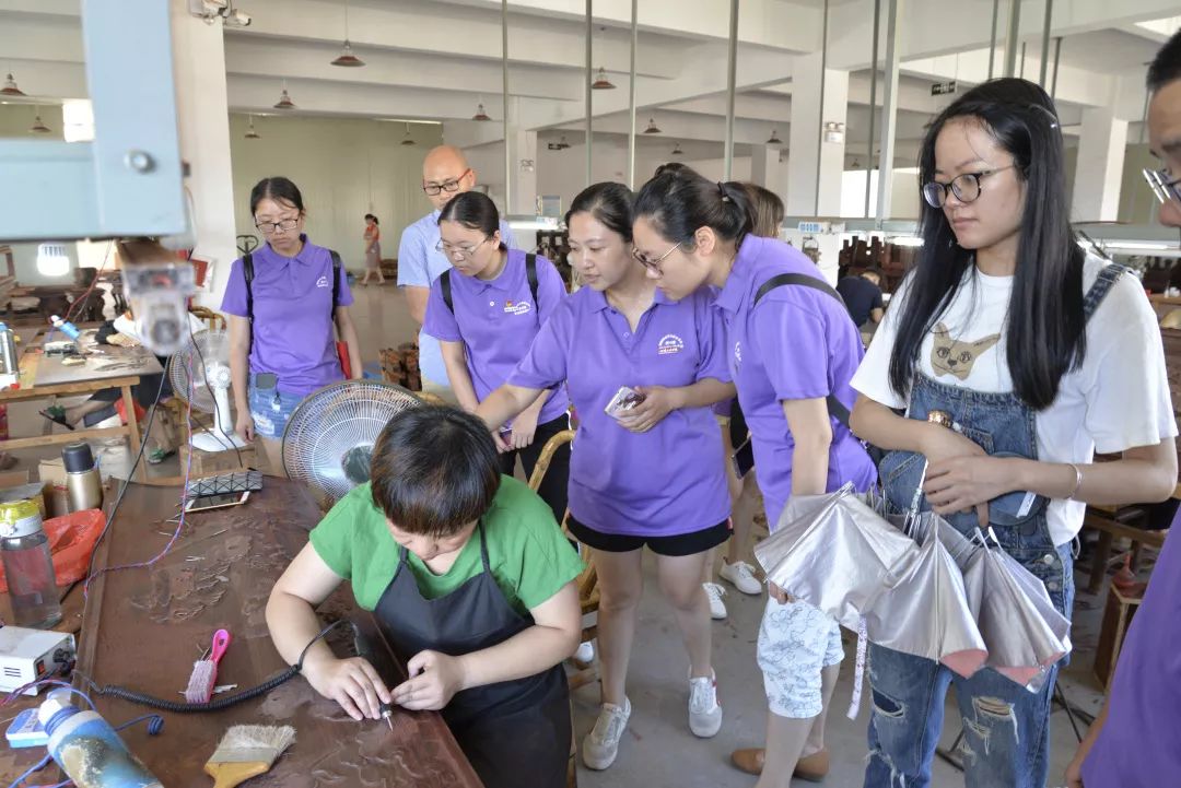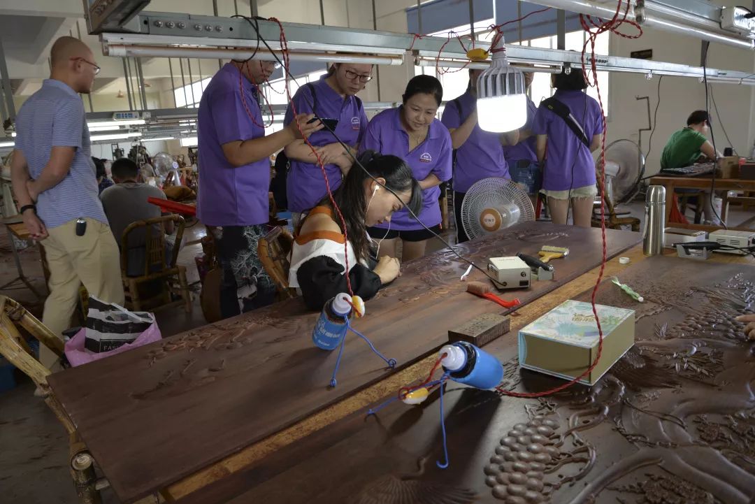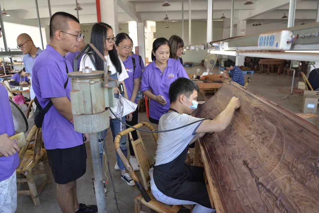 7月9日,服務團走進仙游縣皇冠古典家具有限公司,該公司主營古典家具 , 木雕工藝品生產以及銷售。成員們參觀了該企業(yè)的展廳,了解各種木雕工藝品以及家具的情況,并且走進了該公司的生產車間,開展真人圖書分享,與生產車間木雕工匠面對面近距離接觸,與木雕工藝師傅交流傳承傳統(tǒng)技能心得。