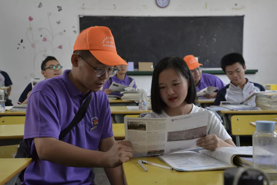 7月8日,服務團成員走進仙游華僑中學,仙游華僑中學坐落在仙游縣著名僑鄉(xiāng)——賴店鎮(zhèn),是一所省一級達標學校和省級實施素質教育工作先進學校、精神文明工作先進學校。歷年來,該中學每年高考均有大量學生報考我院。服務團成員們在華僑中學的課堂上,用生動的船政歷史和人物故事,向華僑中學的同學介紹船政文化。還向同學們介紹我院基本情況及近年學院招生、就業(yè)情況。同時,利用課間休息時間,對同學進行課業(yè)輔導,教育幫扶。