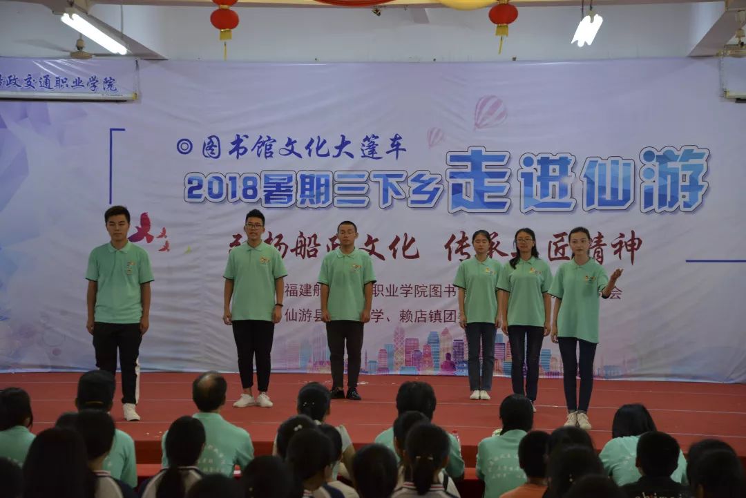 圖書館學生館員聯(lián)合會干部表演了音詩畫《湘江夜話》、詩誦讀《百年船政 再創(chuàng)輝煌》等節(jié)目,并通過移動小型校史館展覽等,向參會的學生傳播船政的歷史和文化,倡導一絲不茍、精益求精的工匠精神。圖書館黨員干部與仙游華僑中學貧困留守兒童結對幫扶,并贈送生活用品。