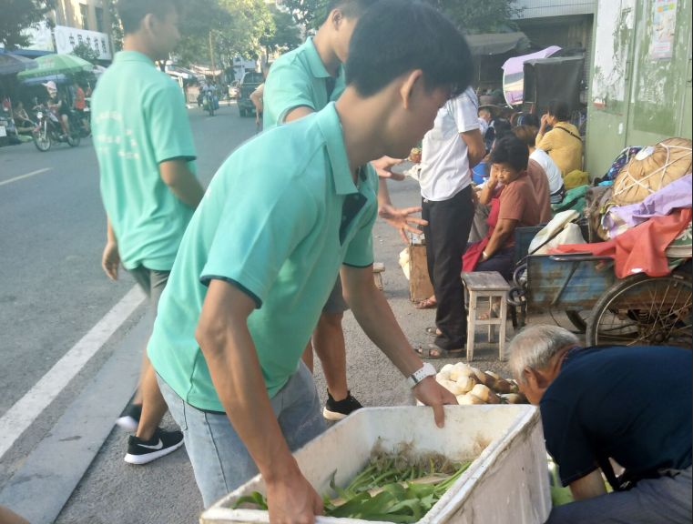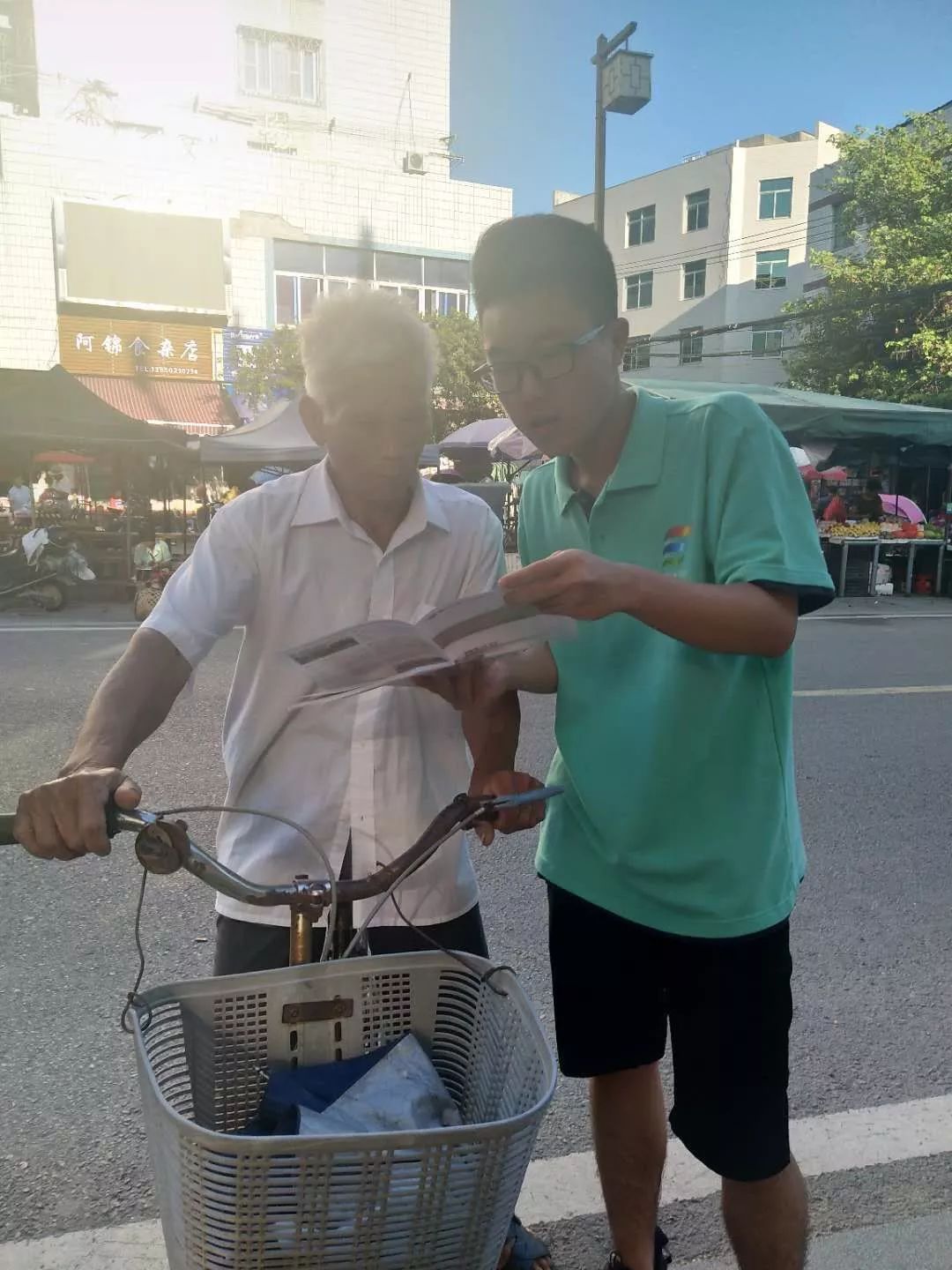 接著團隊成員來到古鎮(zhèn)街道,告訴古鎮(zhèn)居民做到不占道經(jīng)營,愛護古鎮(zhèn);此行不僅對古鎮(zhèn)居民進行了一個宣傳教育,同時也令我們的實踐團隊的全體隊友學(xué)習(xí)到了很多,隊員一致表示以后一定要立足于實踐,做好環(huán)境的保護,不會只停留于嘴上。