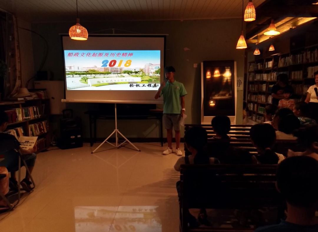 上午的走訪結(jié)束,簡單的午憩之后,下午我們便展開了以弘揚“船政精神”為主題的專題活動;在嚴(yán)老師的幫助下,召集了古鎮(zhèn)當(dāng)?shù)氐木用瘢_展一堂別具特色的主題講座。