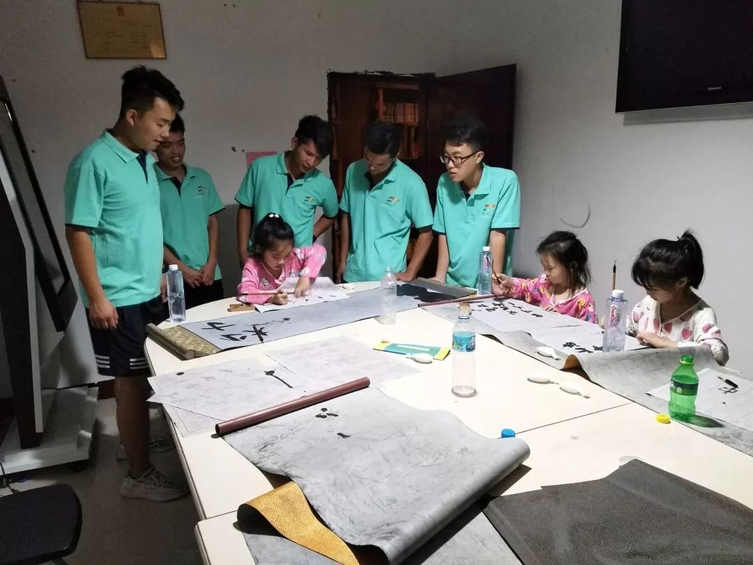 在10日上午,我系三下鄉(xiāng)團隊為嵩口古鎮(zhèn)的青少年們組織開展了弘揚中國傳統(tǒng)文化知識的課程,展開了關(guān)于書法的學(xué)習(xí)、象棋和圍棋的對弈等有趣交流。