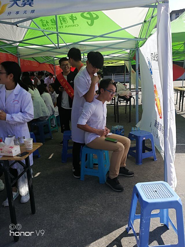 量血壓、測血型、刮痧、