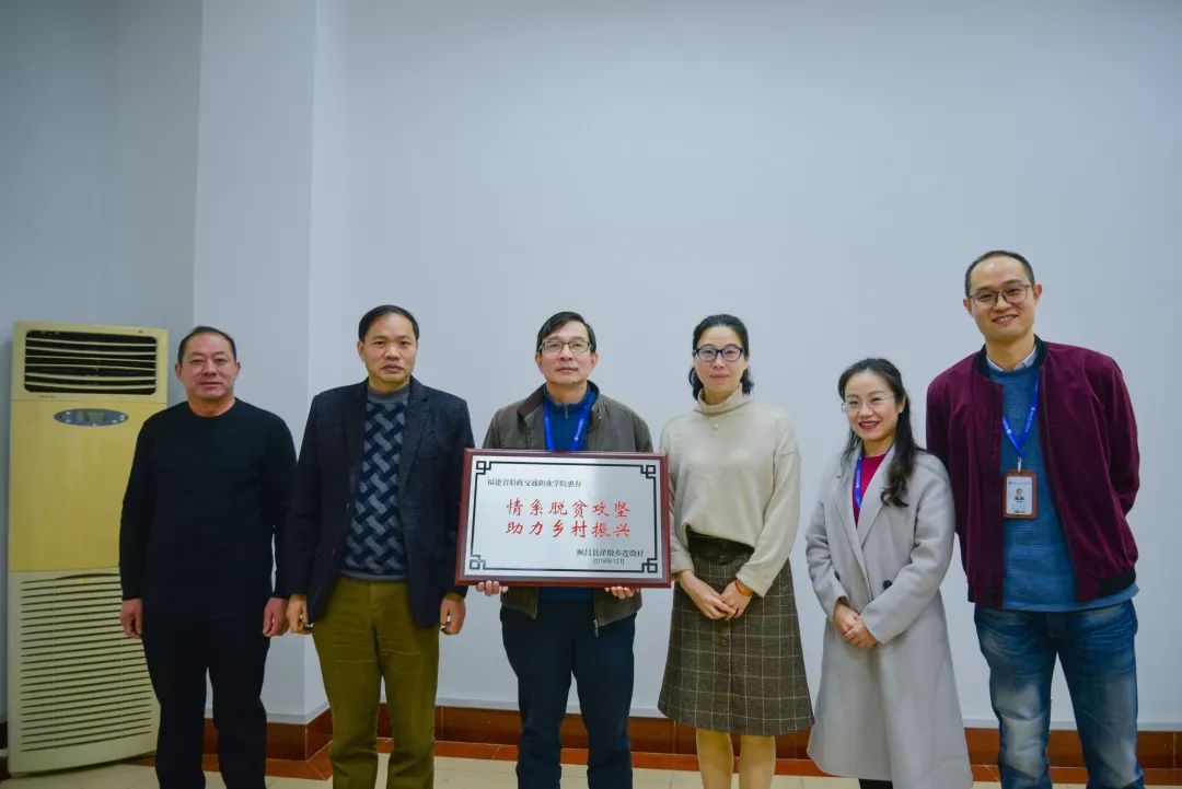 1月11日,順昌縣洋墩鄉(xiāng)黨委書記施萍;順昌縣洋墩鄉(xiāng)黨委副書記、連墩村第一書記龍成忠;順昌縣洋墩鄉(xiāng)連墩村村主任蘇家寬一行來到我院,對我院在脫貧攻堅(jiān)上所做的工作表示感謝。授予我校“情系脫貧攻堅(jiān)、助力鄉(xiāng)村振興”牌匾。