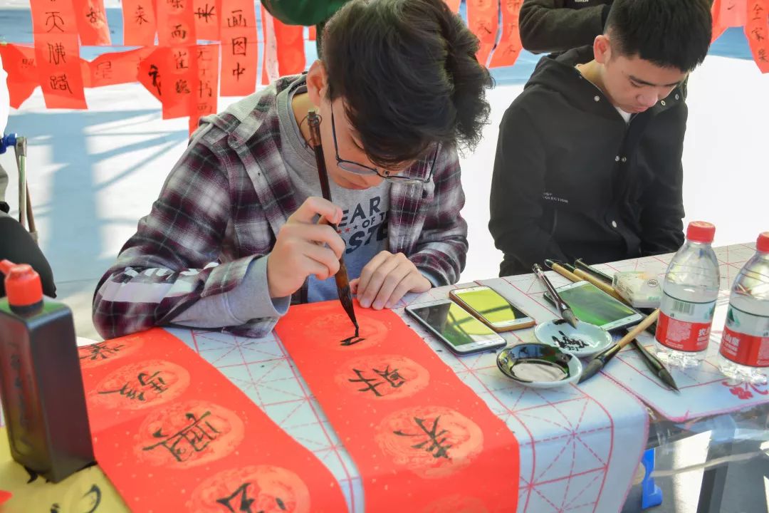 “飛揚(yáng)的紅,肆意的墨,構(gòu)成最誠摯的愿景”。在改革開放40周年之際,也是學(xué)校152周年之際,為倡導(dǎo)“為人民謀幸福,為大眾做貢獻(xiàn)”的精神。2018年12月26號(hào)下午,校團(tuán)委船媒中心在文體中心前舉辦“‘聯(lián)’動(dòng)師生迎元春,祈簽送福滿交院”主題活動(dòng)。
