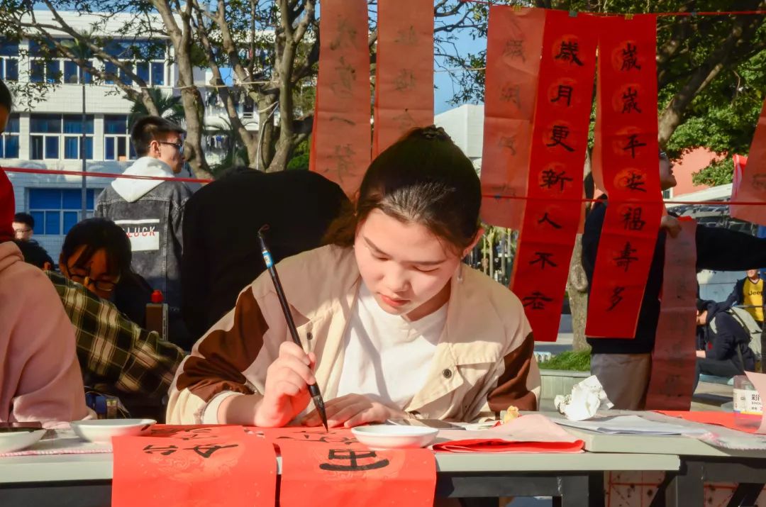 本次活動(dòng)不僅讓師生們感受到久違的濃濃年味,更重要的是傳承傳統(tǒng)文化,促進(jìn)當(dāng)代大學(xué)生對(duì)傳統(tǒng)文化的繼承!活動(dòng)中送出的不只是春聯(lián),更是對(duì)校園的祝福,對(duì)祖國未來蓬勃發(fā)展的期望。一幅幅帶著清新墨香的春聯(lián),一個(gè)個(gè)帶著美好祝愿的“?!弊?,是我們對(duì)美好青春生活的向往,是對(duì)祖國改革開放40周年與船政學(xué)院152周年來翻天覆地變化的感嘆與歌頌!