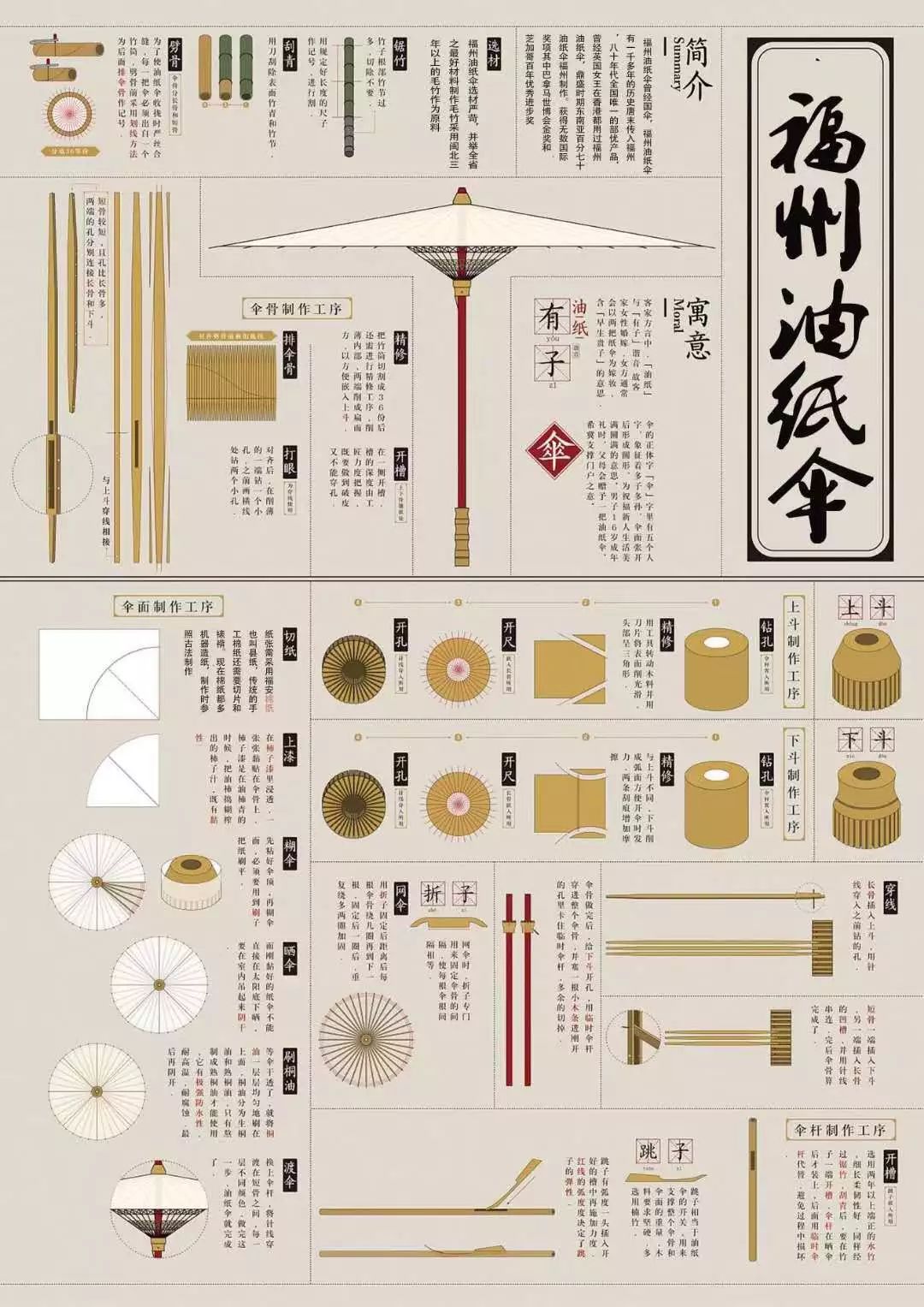 福州油紙傘是在唐朝時期由王審知從中原帶進福州的,距今已經(jīng)有千年的歷史。“油紙”寓意著“有子”,在古代,福州人需要進京趕考,傘頭就像書童的發(fā)髻,打開油紙傘到最高處之時發(fā)出的聲音又寓意著高中,父母為出門在外的學子準備的一把油紙傘寄托著的不僅是孩子在外平平安安更能學有所成高中狀元的美好愿景。
