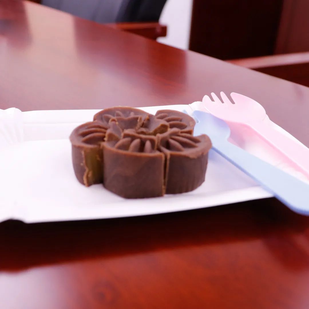 會(huì)后,師生們一起切蛋糕,吃月餅,開(kāi)心共度佳節(jié)。
