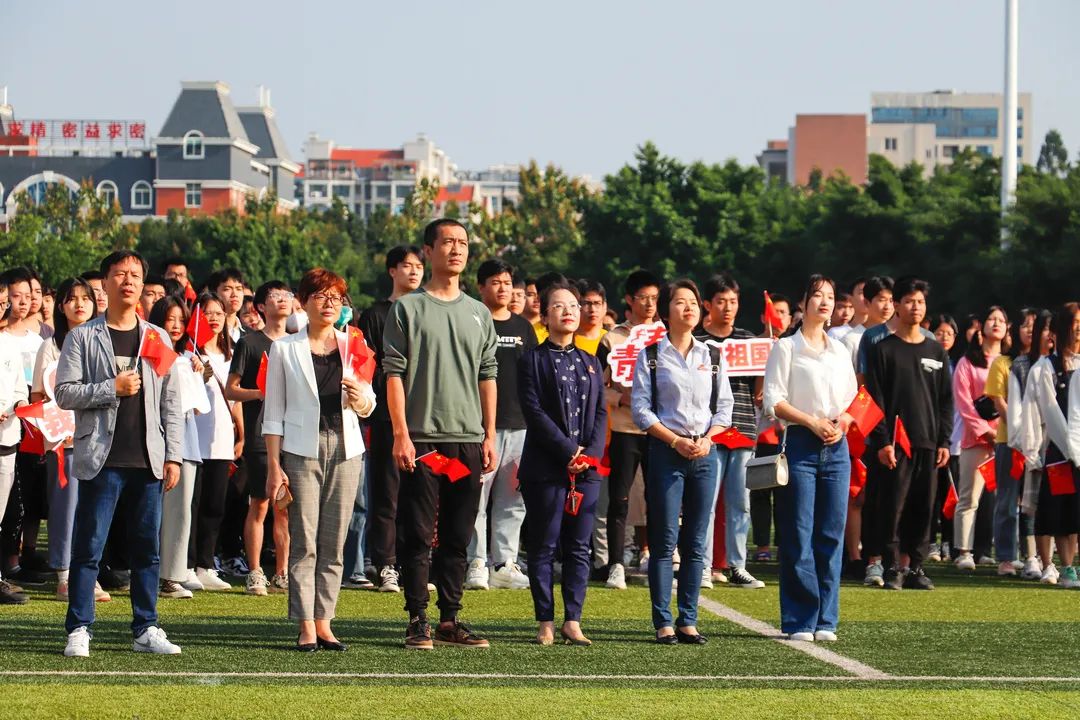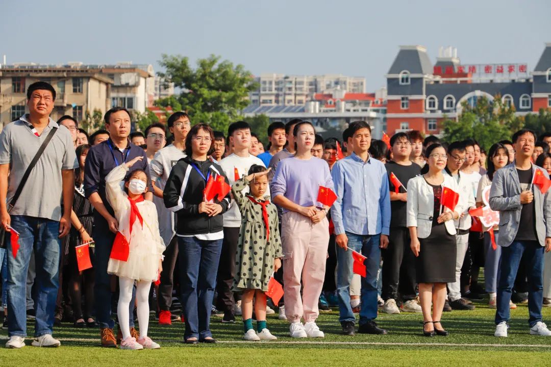 在雄壯的國(guó)歌聲中,鮮艷的五星紅旗冉冉升起,迎風(fēng)飄揚(yáng)。全體師生深懷對(duì)祖國(guó)的無(wú)限熱愛(ài)和崇高敬意,面向國(guó)旗行注目禮。