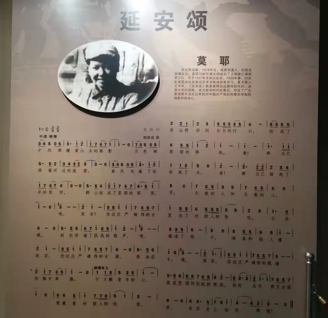“夕陽輝耀著山頭的塔影,月色映照著河邊的流螢。春風(fēng)吹遍了坦平的原野,群山結(jié)成了堅固的圍屏。哦,延安!你這莊嚴(yán)雄偉的古城,到處傳遍了抗戰(zhàn)的歌聲……”團(tuán)員青年們來到《延安頌》展廳前,一起聆聽由福建安溪籍老革命女作家莫耶創(chuàng)作的獻(xiàn)給革命圣地的心靈之歌《延安頌》,大家都沉醉在壯麗的歌聲中,感受到當(dāng)時廣大愛國青年及抗日軍民對中國共產(chǎn)黨的熱愛和奪取抗日勝利的決心。