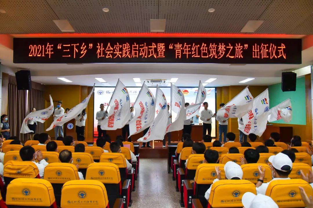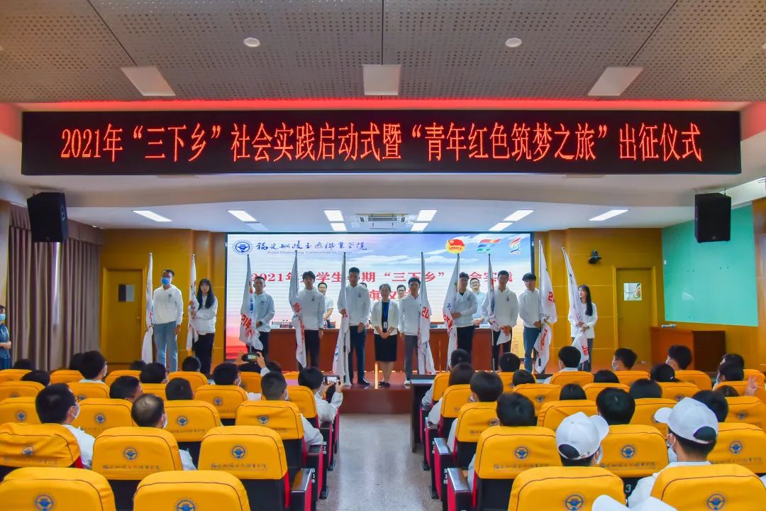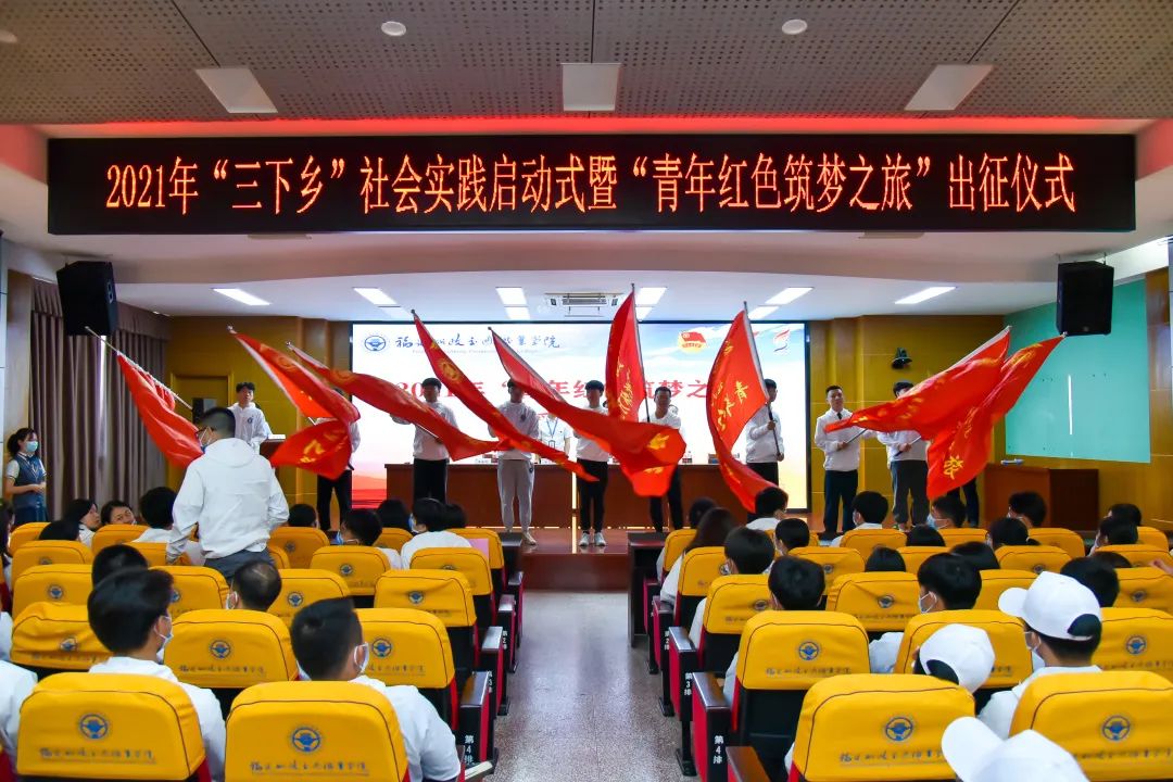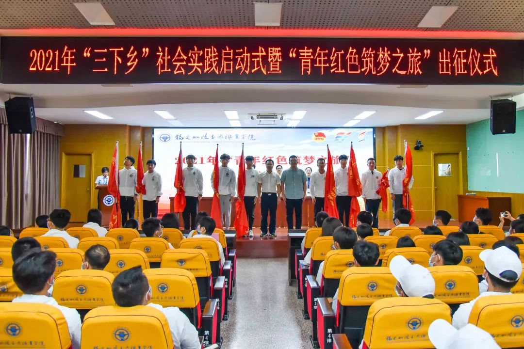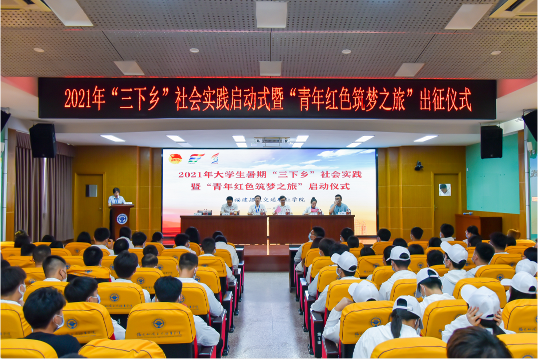 為慶祝中國共產(chǎn)黨成立100周年,落實共青團中央《關(guān)于開展2021年全國大中專學(xué)生志愿者暑期文化科技衛(wèi)生“三下鄉(xiāng)”社會實踐活動的通知》要求,6月30日下午,福建船政交通職業(yè)學(xué)院2021年大學(xué)生暑期“三下鄉(xiāng)”社會實踐暨“青年紅色筑夢之旅”活動啟動儀式在我院北區(qū)1號樓六樓學(xué)術(shù)報告廳舉行。學(xué)院黨委副書記陳宜大,相關(guān)部門負(fù)責(zé)人,以及今年參加大學(xué)生暑期“三下鄉(xiāng)”社會實踐、青年紅色筑夢之旅的師生代表等200余人參加了本次會議。會議由學(xué)院團委副書記梁晶主持。