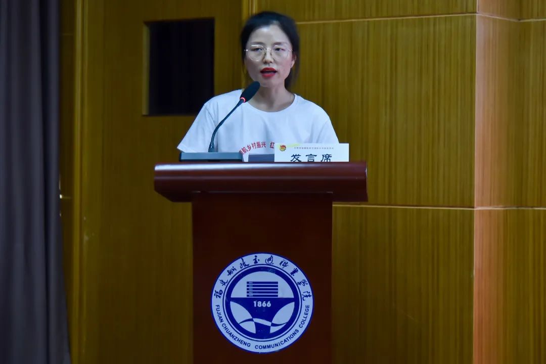 學(xué)院團委書記陳慧為2021年大學(xué)生暑期“三下鄉(xiāng)”社會實踐活動代表授旗。
