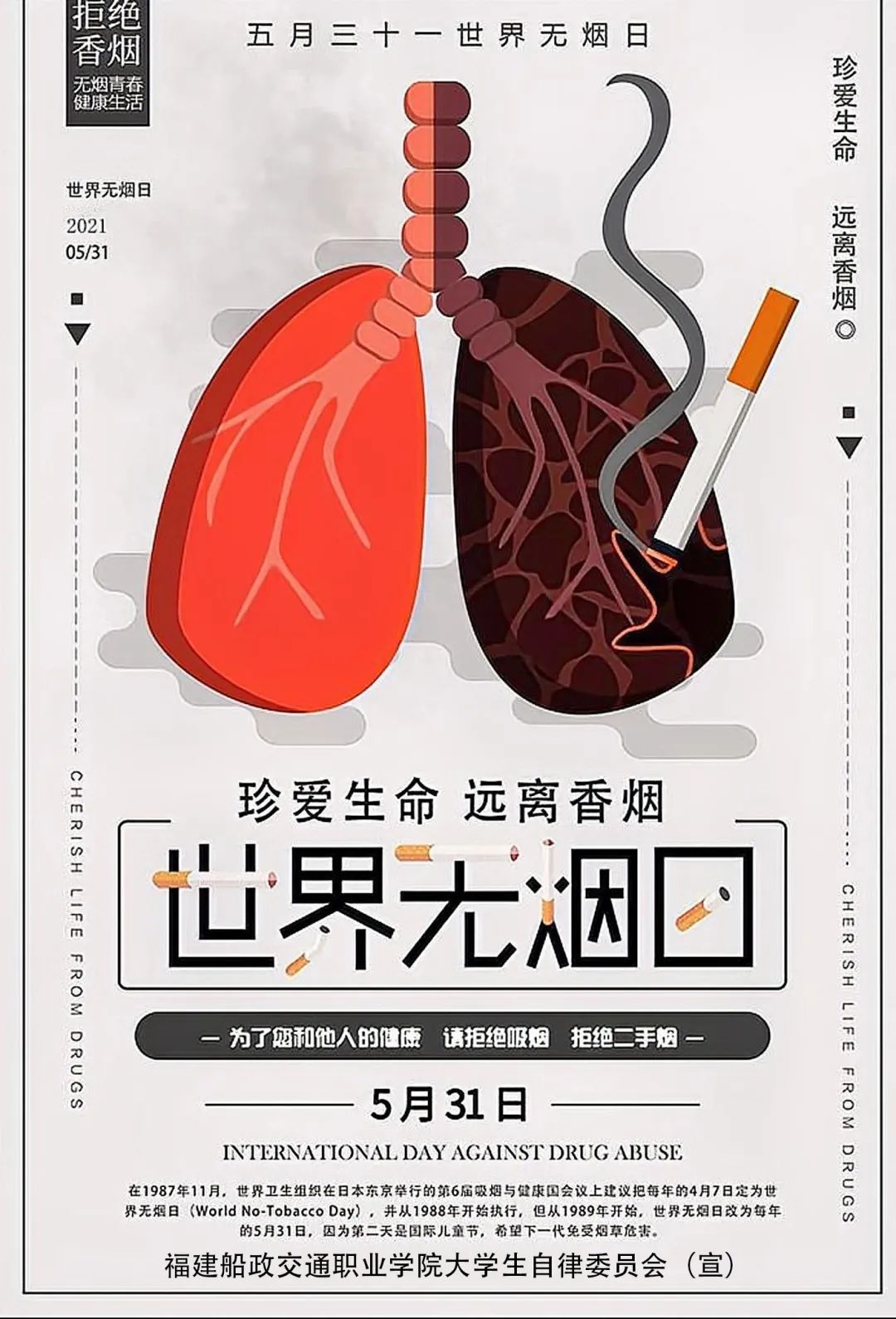 為推動黨史學(xué)習(xí)教育深入開展,將學(xué)習(xí)成果轉(zhuǎn)化為辦實事、開新局的實際行動,動員更多師生參與和支持校園無煙事業(yè),以優(yōu)異成績慶祝中國共產(chǎn)黨成立100周年,在世界第34個世界無煙日到來之際,校大學(xué)生自律委員會舉辦“承諾戒煙 共享無煙環(huán)境”世界無煙日校園系列活動。