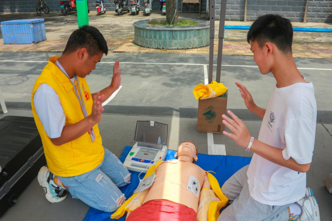 讓急救知識(shí)進(jìn)社區(qū),關(guān)愛生命,守護(hù)健康。我校紅十字會(huì)學(xué)生分會(huì)于5月12日開展“我為群眾辦實(shí)事—救在身邊社區(qū)講堂”急救知識(shí)進(jìn)社區(qū)活動(dòng),提高社區(qū)居民急救意識(shí),使他們學(xué)習(xí)基本的救護(hù)理論,能夠利用寶貴的黃金時(shí)刻,及時(shí)、有效地開展現(xiàn)場(chǎng)救護(hù),達(dá)到減輕傷殘、挽救生命的目的。