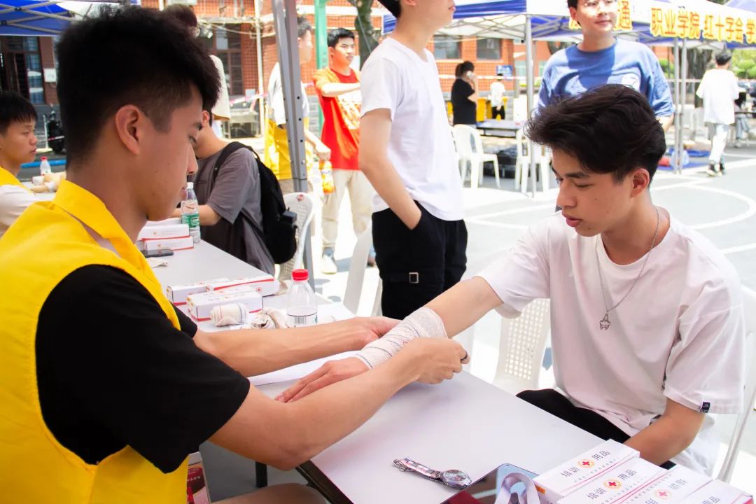 學(xué)習(xí)黨史強(qiáng)信念,我為青年辦實(shí)事。在第74個(gè)“世界紅十字日”之際,我校紅十字會(huì)學(xué)生分會(huì)于2021年5月9日在北區(qū)文體中心前籃球場(chǎng)舉辦“關(guān)愛生命、救在身邊”紀(jì)念第74個(gè)世界紅十字日的宣傳活動(dòng),開設(shè)不同活動(dòng)體驗(yàn)區(qū),為師生開展應(yīng)急救護(hù)知識(shí)技能的現(xiàn)場(chǎng)教學(xué);健康義診——視力查詢、口腔牙齒檢查。