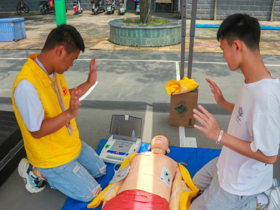 我院在北區(qū)田徑場配置了AED除顫儀,每年定期對同學們進行AED的宣傳科普和操作培訓。