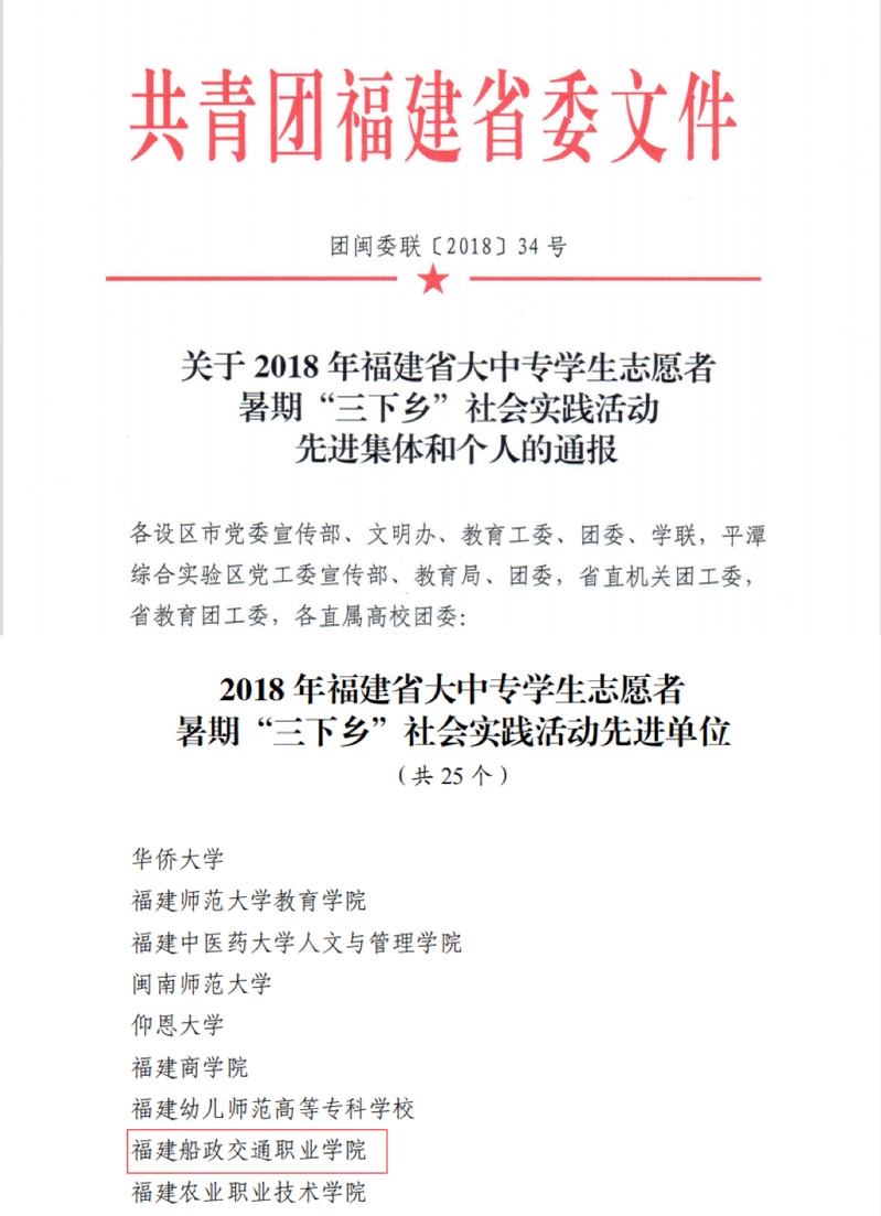 2018年福建省大中專學(xué)生志愿者暑期“三下鄉(xiāng)”社會實踐活動先進(jìn)單位)