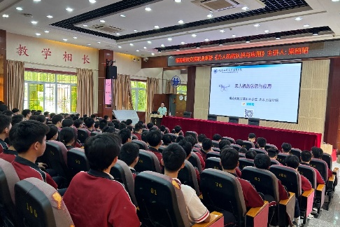 2023年我社指導(dǎo)老師梁昭陽(yáng)老師赴惠安開(kāi)城職業(yè)學(xué)校開(kāi)展職業(yè)啟蒙教育活動(dòng),從無(wú)人機(jī)的定義分類、系統(tǒng)介紹、操控抗法以及行業(yè)應(yīng)用等方面開(kāi)展《無(wú)人機(jī)認(rèn)識(shí)與應(yīng)用》講座。