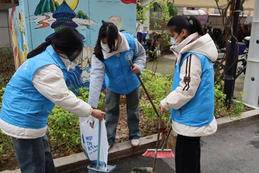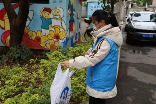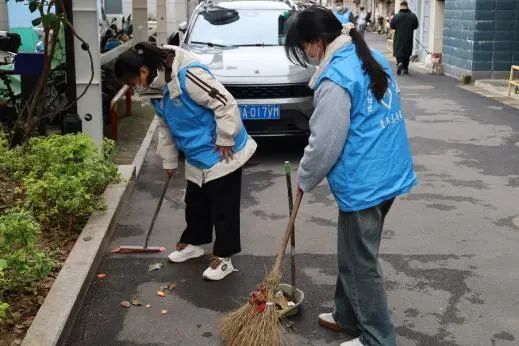 在社區(qū)里,隨處可見身著藍馬甲的志愿者身影,他們紛紛化身“環(huán)境美容師”,擼起袖子,默契配合,清掃路面落葉、拾撿白色垃圾。青年志愿者們用他們的雙手,用他們的汗水,給居民們營造了更和諧,更干凈的社區(qū)。