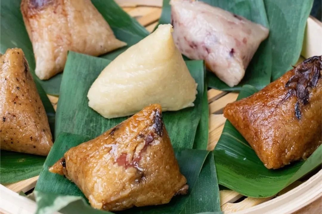 粽,即“粽籺”,俗稱粽子,主要材料是糯米、餡料,用箬葉(或柊葉)包裹而成,形狀多樣,有尖角狀、四角狀等。粽子由來久遠,最初是用來祭祀祖先神靈的貢品。傳入北方后,用黍米(北方產黍)做粽,稱“角黍”。