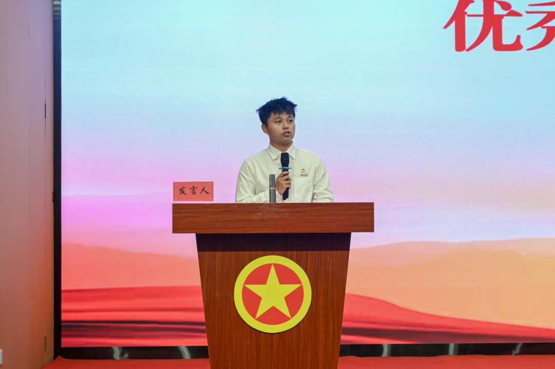 機(jī)械與智能制造學(xué)院新團(tuán)員王晨同學(xué),代表第一批新團(tuán)員發(fā)言,他表示,將以團(tuán)員標(biāo)準(zhǔn)律己,勤學(xué)奮進(jìn),對標(biāo)前輩,展現(xiàn)青春風(fēng)采。