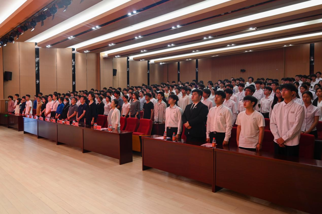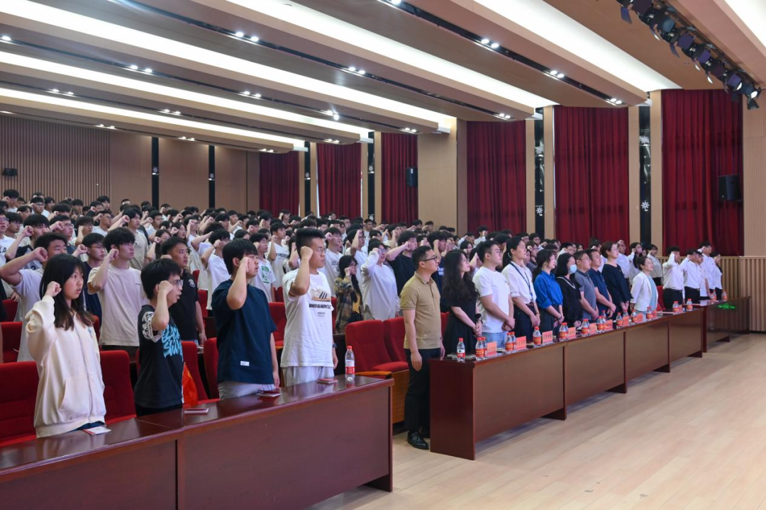 在學(xué)院團(tuán)委學(xué)生兼職副書記夏昊城同學(xué)的領(lǐng)誓下,新團(tuán)員們高舉右拳莊嚴(yán)宣誓,錚錚誓言在會場回蕩。這誓言將化作前行動力,激勵(lì)新團(tuán)員們不忘初心,踐行承諾。