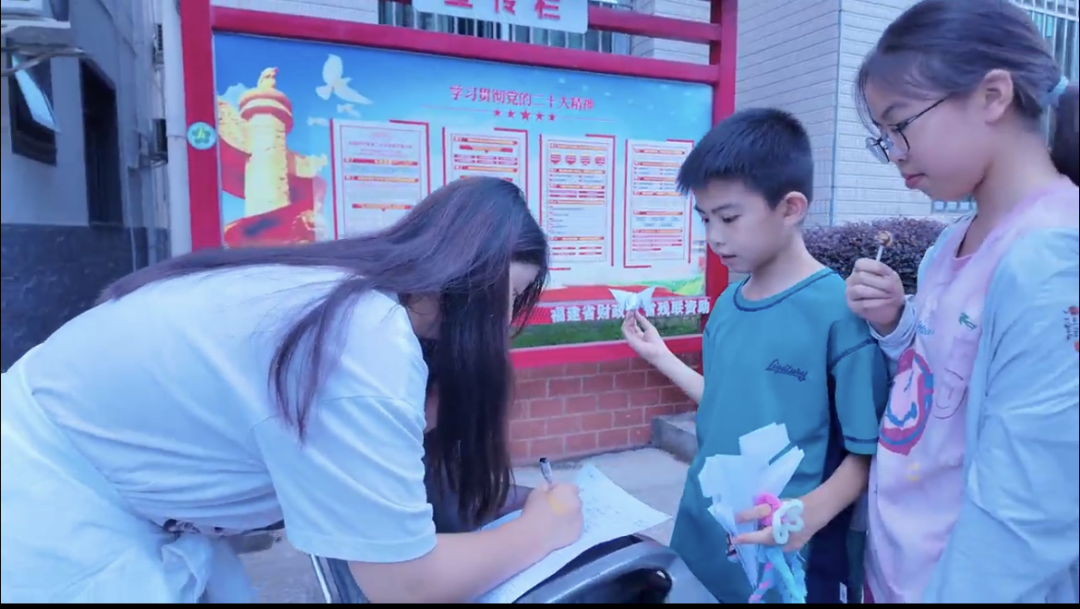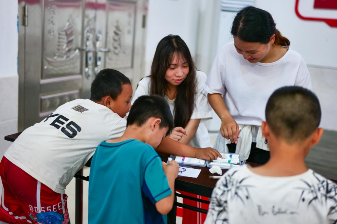 圖為實(shí)踐團(tuán)在三溪鄉(xiāng)溪源村對(duì)小朋友進(jìn)行調(diào)查問卷