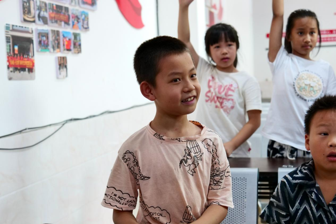 活動(dòng)期間,隊(duì)員們以一場(chǎng)“數(shù)字傳聲筒”破冰小游戲拉開序幕。游戲瞬間點(diǎn)燃了現(xiàn)場(chǎng)氣氛,引發(fā)了小朋友們的熱情,也迅速拉近了隊(duì)員與小朋友們的距離。原本稍顯拘謹(jǐn)?shù)男∨笥褌冎饾u放松下來,與隊(duì)隊(duì)員融入一片。隨后,活動(dòng)重心聚焦于溪源村極具特色的油茶非遺文化,隊(duì)員們圍繞油茶的制作工藝、生產(chǎn)流程、茶油作用,以及家鄉(xiāng)非遺項(xiàng)目等內(nèi)容,與小朋友們展開了一場(chǎng)既有深度又有溫度的交流。過程中,隊(duì)員們鼓勵(lì)小朋友們積極提問、大膽發(fā)言,引導(dǎo)他們主動(dòng)思考本土文化,在輕松愉快的氛圍中,小朋友們對(duì)家鄉(xiāng)文化的認(rèn)知不再停留于表面,而是逐漸深入理解其獨(dú)特內(nèi)涵與魅力,同時(shí)也增強(qiáng)了小朋友們對(duì)家鄉(xiāng)文化的認(rèn)同感和自豪感。