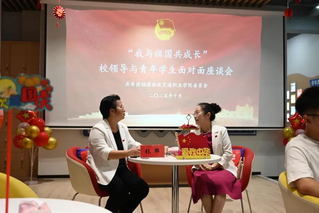 10月1日,學院在福航園“一站式”學生社區(qū)服務中心和福道園7#青年之家,分別舉辦“我與祖國共成長”校領導與青年學生面對面座談會。