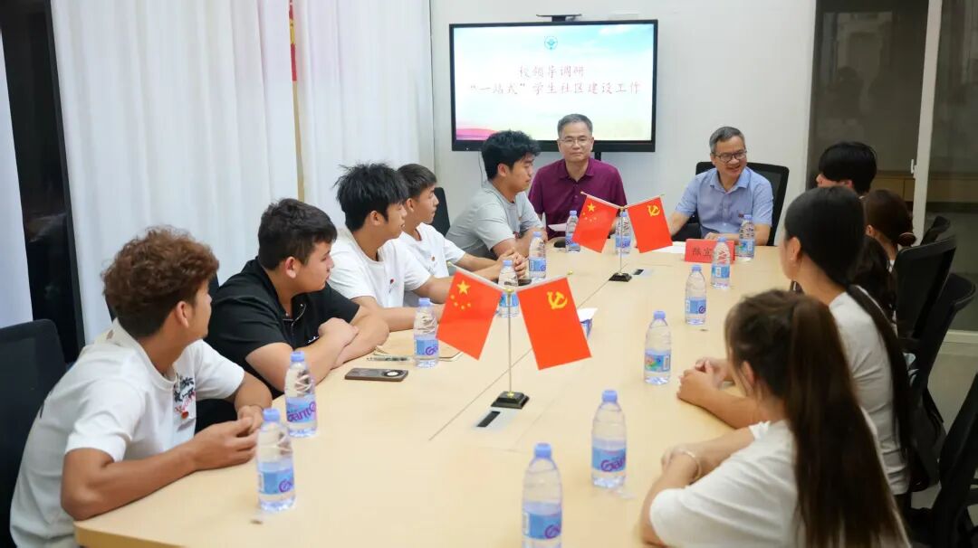 在“一站式”學生社區(qū)服務中心,學院黨委書記陳宜大,與留校的新生代表、少數(shù)民族學生代表、家庭困難學生們,共話成長、同度國慶、中秋佳節(jié)。學院黨委學生工作部、后勤管理處、土木工程學院、安全與環(huán)境學院等相關職能部門和二級學院領導參加座談。