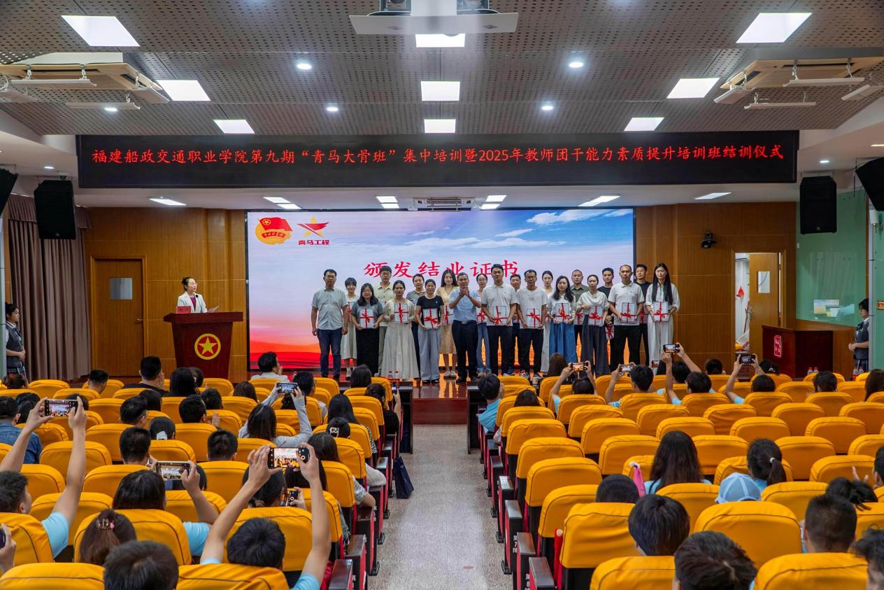 2025年7月25日上午,福建船政交通職業(yè)學(xué)院2025年教師團(tuán)干培訓(xùn)班舉行結(jié)業(yè)儀式。結(jié)業(yè)儀式由校團(tuán)委書記陳慧主持。教師團(tuán)干代表泉州職業(yè)技術(shù)大學(xué)團(tuán)委許雪琳暢談五天來的所學(xué)所感,直言收獲頗豐,結(jié)合自身工作實(shí)際分享了實(shí)踐思考,真摯的話語引發(fā)了在場學(xué)員的強(qiáng)烈共鳴。最后,福建省團(tuán)校副校長李華軍為學(xué)員們頒發(fā)了結(jié)業(yè)證書。