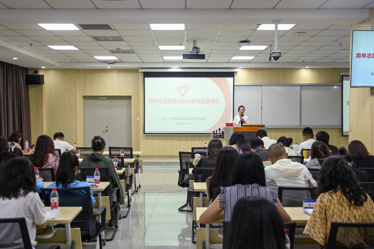 第二講,是中央團(tuán)校黨的群眾工作教研部左濤老師帶來的《志愿服務(wù)項(xiàng)目體系與品牌建設(shè)》。他通過帶領(lǐng)參訓(xùn)教師團(tuán)干深入學(xué)習(xí)習(xí)近平總書記關(guān)于志愿服務(wù)的重要論述,錨定青年志愿者事業(yè)與社會主義現(xiàn)代化國家建設(shè)同行的發(fā)展方向,為夯實(shí)教師團(tuán)干的政治理論根基,打造有影響力、可持續(xù)的青年志愿服務(wù)品牌提供了清晰指引。