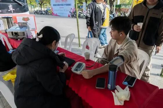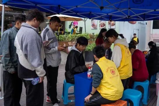 福道園圖書館前的獻血點, 志愿者全程暖心引導,醫(yī)護人員操作專業(yè)又細致,從登記到留觀全程高效規(guī)范,讓每一位獻血者都倍感安心。青年學子流淌的熱血承載著善意,將這份溫暖持續(xù)傳遞下去。
