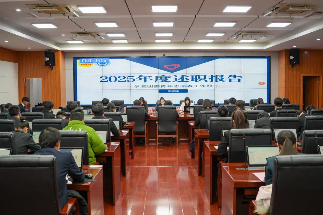 1月11日上午,學(xué)院團(tuán)委2025年度校級(jí)學(xué)生組織述職評(píng)議會(huì)議在福道園行政樓六樓會(huì)議室舉行。學(xué)院團(tuán)委書記陳慧、團(tuán)委學(xué)生社團(tuán)管理部部長(zhǎng)湯曉玲,學(xué)院學(xué)生組織負(fù)責(zé)人參加會(huì)議。會(huì)議由學(xué)院團(tuán)委學(xué)生兼職副書記劉濱福主持。