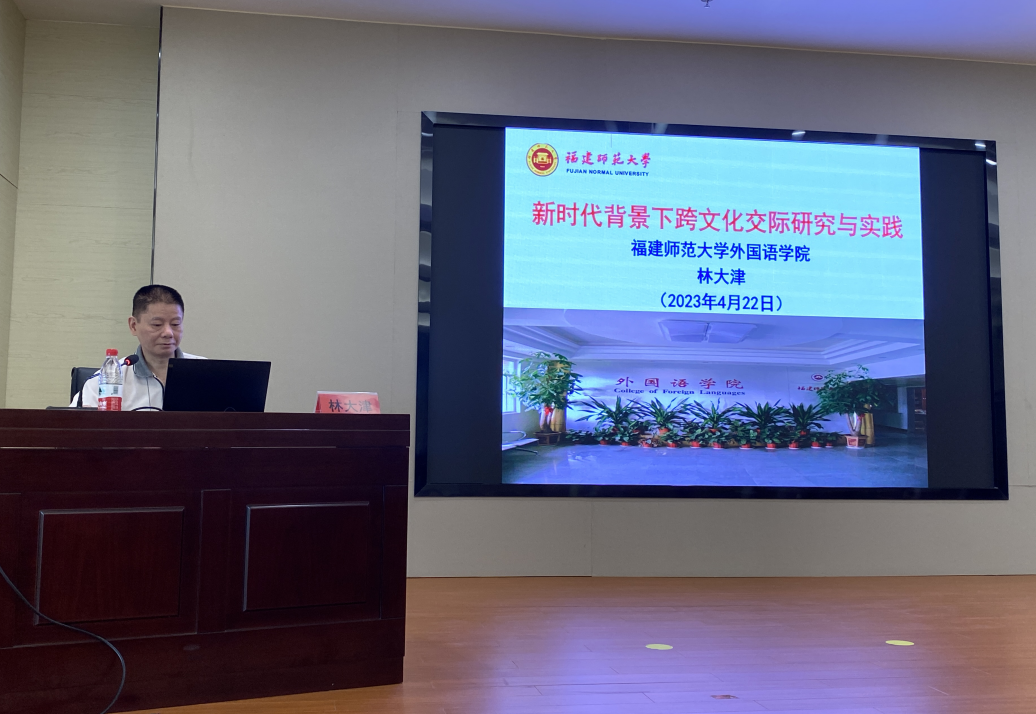 福建師范大學(xué)外國語學(xué)院前院長、博士生導(dǎo)師、國務(wù)院政府特殊津貼專家、福建省優(yōu)秀教師林大津教授作題為“新時代背景下跨文化交際研究與實(shí)踐”的專題講座。林大津教授圍繞中西方文化特點(diǎn)及差異,分享他的跨文化研究歷程,詮釋了中外人文交流的真諦,并提出“一帶一路”建設(shè)需要語言鋪路、投石問路,要求每一位建設(shè)者拓寬國際視野,識別、理解、尊重多元文化,提升用英語傳播中華文化的能力。林大津教授激情澎湃、旁征博引的學(xué)者風(fēng)范贏得老師們的陣陣掌聲。