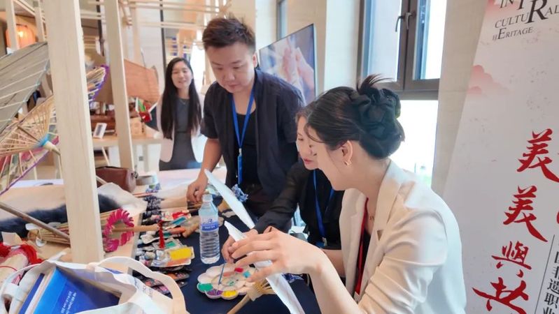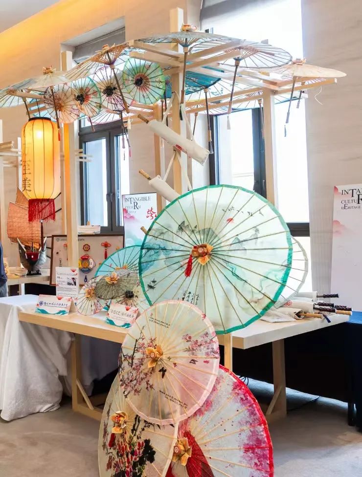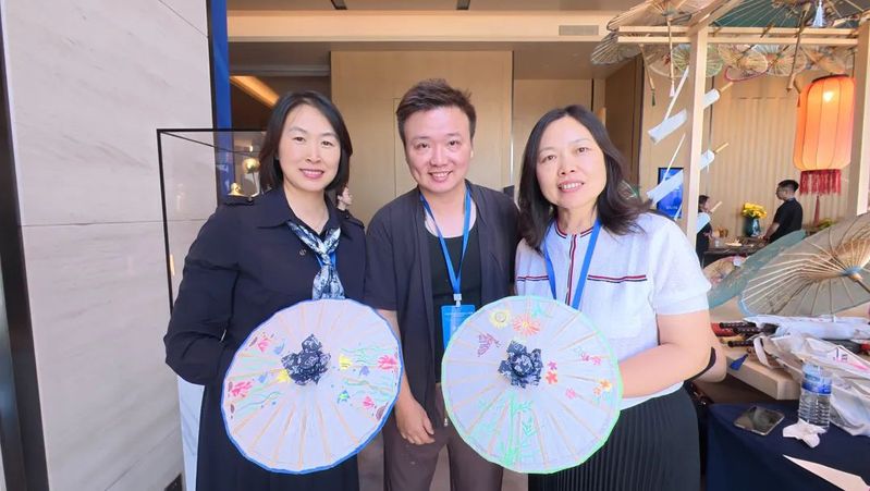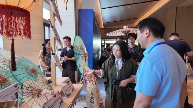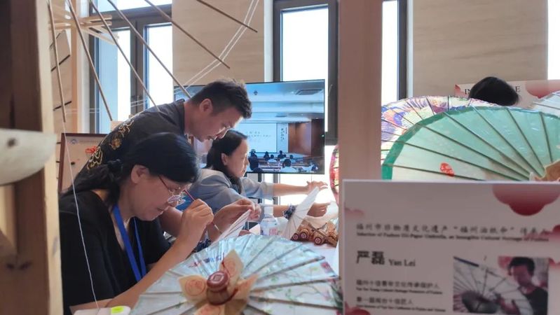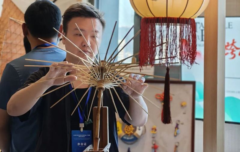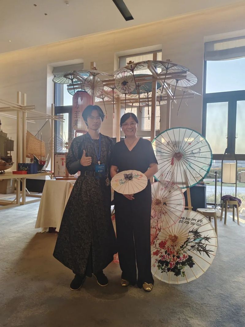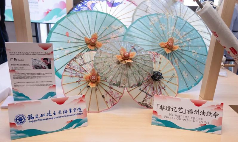 會議期間同步舉辦了“跨越山海 美美與共”中國非遺職業(yè)教育成果巡展之“非遺記藝”文化藝術(shù)交流展。我院非遺傳習(xí)社指導(dǎo)教師、通識教育學(xué)院教師林丹青與我院特聘非遺傳承人嚴(yán)磊帶領(lǐng)社團(tuán)成員攜福建省第六批省級非物質(zhì)文化遺產(chǎn)代表性項目——福州油紙傘制作技藝精彩亮相,成為展會上一道亮麗風(fēng)景,向世界展示了我院在非遺傳承與職業(yè)教育融合創(chuàng)新中的豐碩成果。