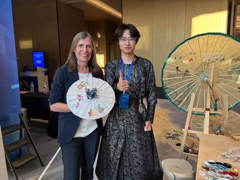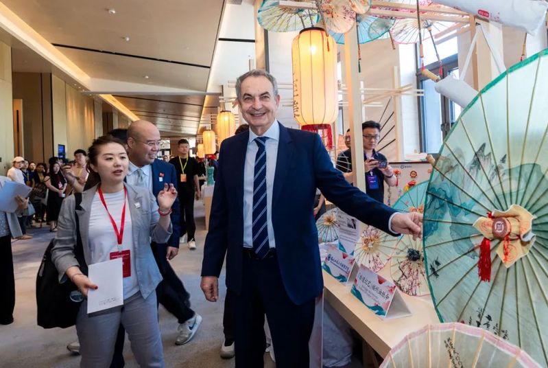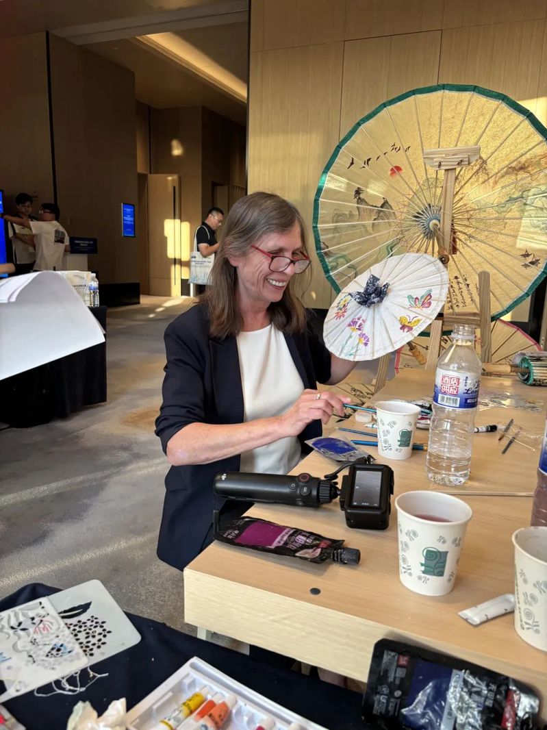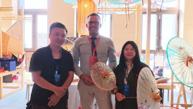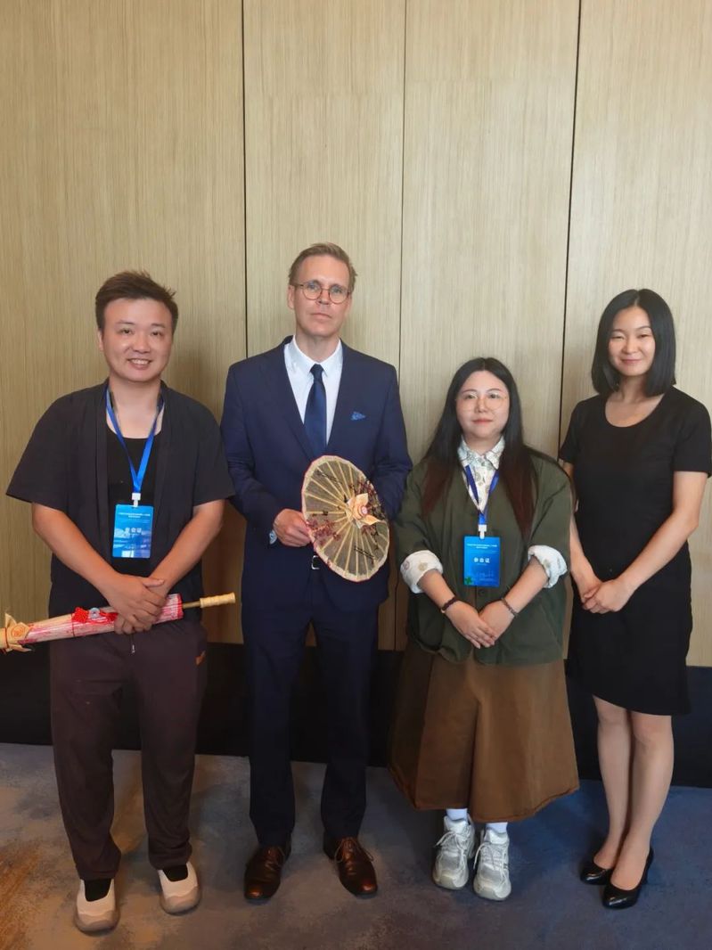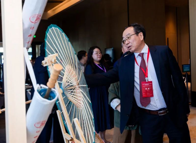福州油紙傘不僅作為精美的藝術(shù)品被欣賞,更成為傳遞中華情誼、促進(jìn)民心相通的橋梁。我院師生將精心制作的福州油紙傘作為象征友誼與祝福的文化禮物,贈予了到訪展位的各國友人。西班牙前首相薩帕特羅先生饒有興致地欣賞了油紙傘,并欣然接受了這份蘊(yùn)含東方美意與匠心的禮物。中國歐盟協(xié)會秘書長宋敬武先生也對我院展示的福州非遺油紙傘項目給予了高度評價和特別關(guān)注,詳細(xì)詢問了項目在我院職業(yè)教育中的傳承與創(chuàng)新實踐。我院非遺傳承教育成果得到了來自與會各方的認(rèn)可,并贊譽(yù)福州非遺油紙傘為連接中歐文明的獨(dú)特信物。
